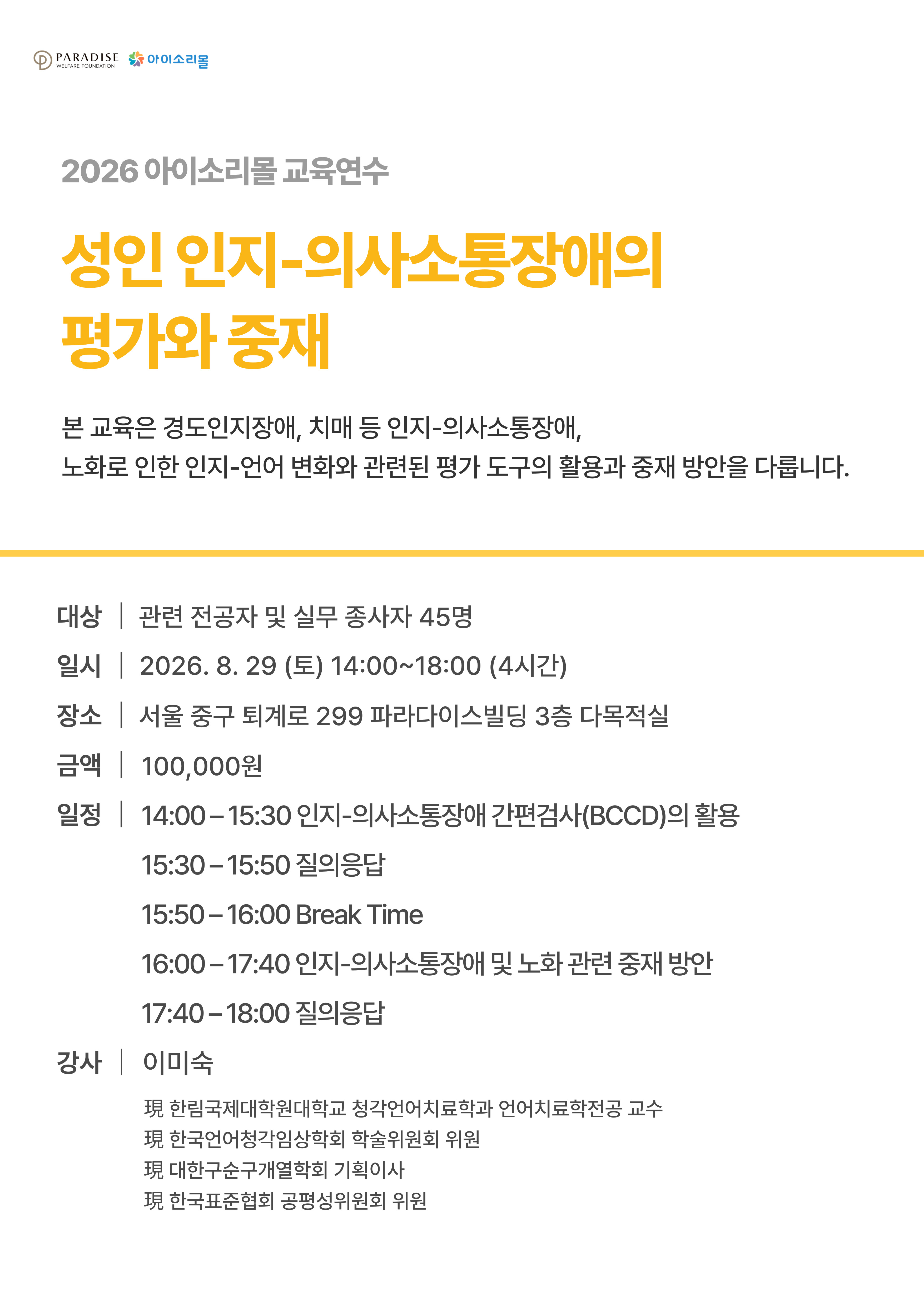 성인 인지-의사소통장애의 평가와 중재 교육연수